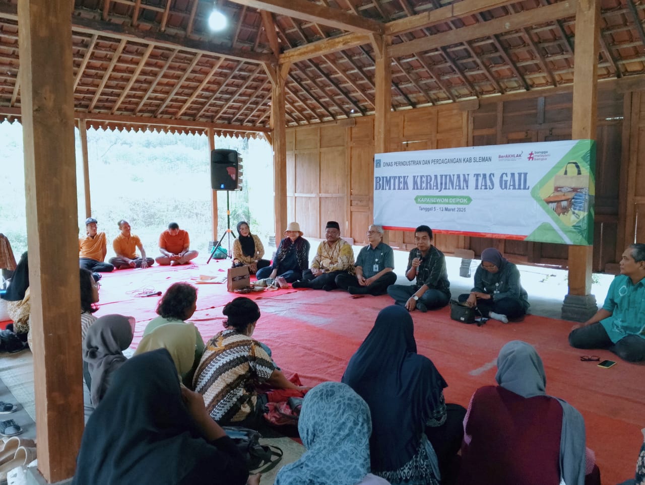 Sambilegi Lor- Sebayak 20 orang terdiri dari ibu-ibu dan pemuda mengikuti Bimtek Kerajinan tas gail Rabu, (5/3/2026) di pendopo Ringin Kunign Modinan yang diselenggaran oleh Dinas Perindustrian dan Perdagangan Kab. Sleman. Dinas kali ini menyelenggarakan pelatihan membuat tas gail yang sebelunya (dua tahun lalu) juga menyelenggarakan pelatihan membatik. Rencananya pelatihan ini berjalan selama 7 hari, mulai dari tanggal 5-13 Maret. Memadukan kain hasil batik Sekar Kesambi dengan tas gail, menjadikan sebuah hasil seni yang luar biasa.